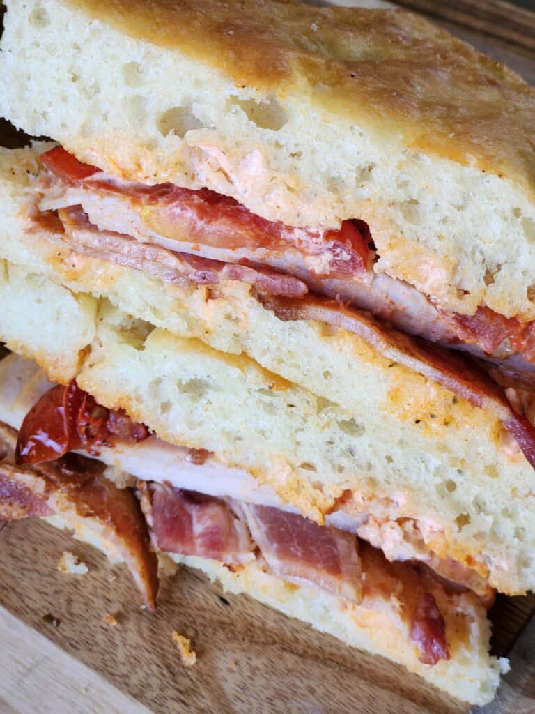 Zoe’s smoked turkey breast meets Jack Mountain bacon on focaccia dressed to the nines with Sriracha ranch, and oven-roasted tomatoes for our twist on a turkey bacon ranch sandwich.